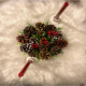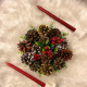 katacak karışık renk detaylı kozalak süsü ve ikili beyaz renk şamdan set