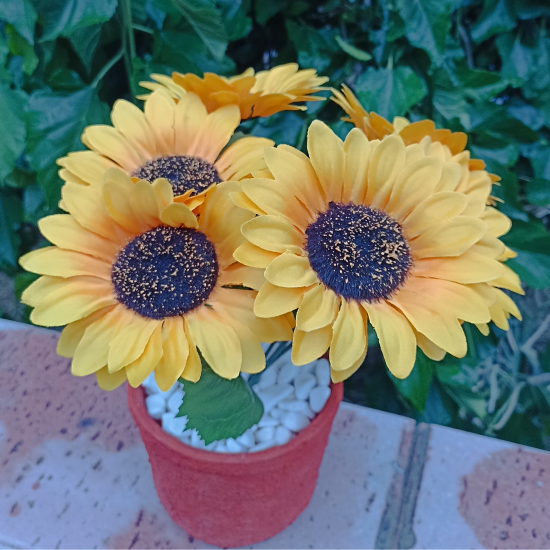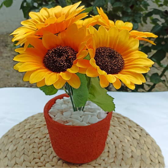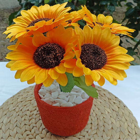 Beton Saksıda Yapay Ayçiçeği, görsel olarak